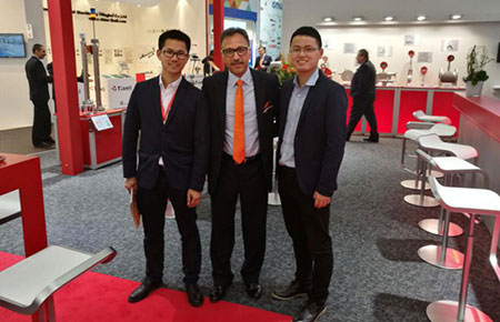 △2017年漢諾威工業博覽會上,公司技術人員同外國友人合影