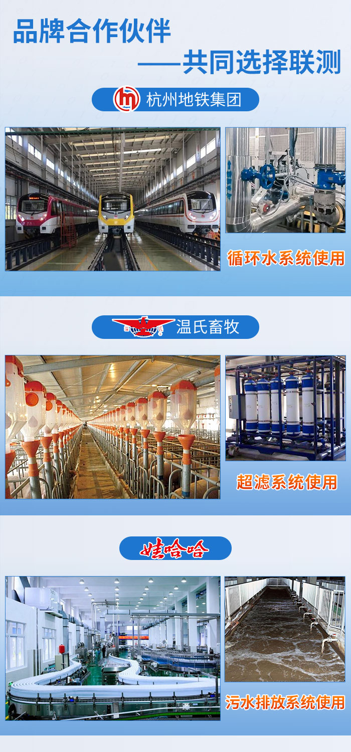 近年來(lái),聯(lián)測(cè)儀表廣泛應(yīng)用于各大領(lǐng)域,與國(guó)內(nèi)品牌杭州地鐵集團(tuán)、溫氏畜牧、娃哈哈......達(dá)成合作,專業(yè)的技術(shù),敬業(yè)的服務(wù)贏得了諸多企業(yè)的信賴與支持。本次合作也給客戶留下了良好的印象,好評(píng)連連,溫州繞城高速公路有限公司表示,后續(xù)多個(gè)站點(diǎn)會(huì)批量使用我司電磁流量計(jì)。